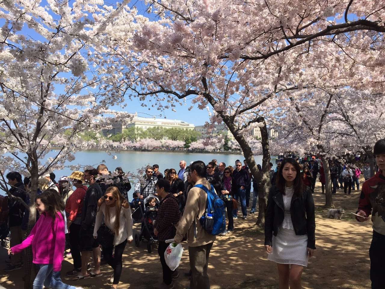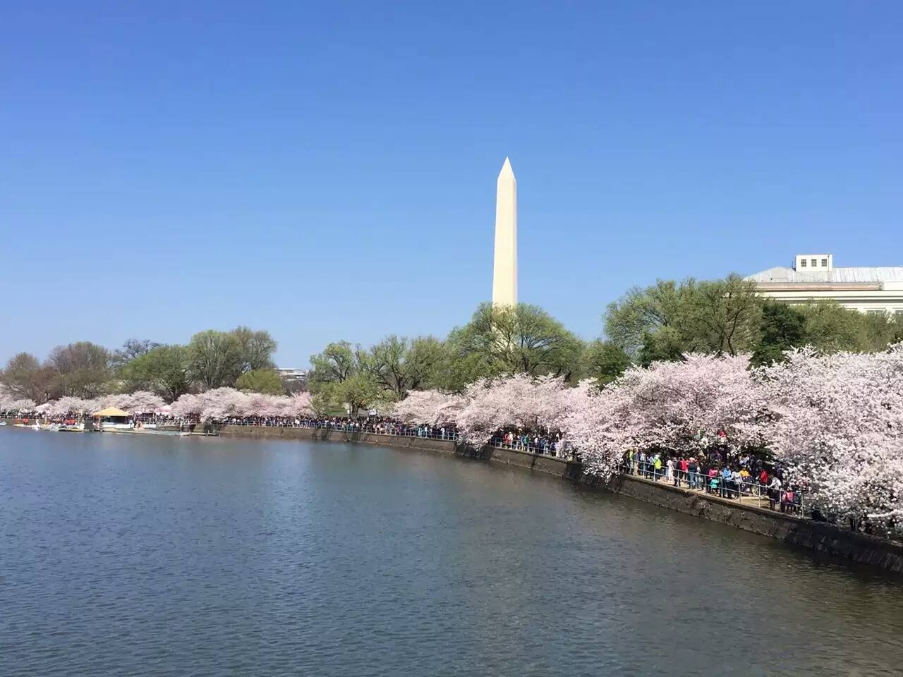 下面的照片是朋友在一周后 2016 年3月26 号在华盛顿拍摄的,这时已经樱花盛开。