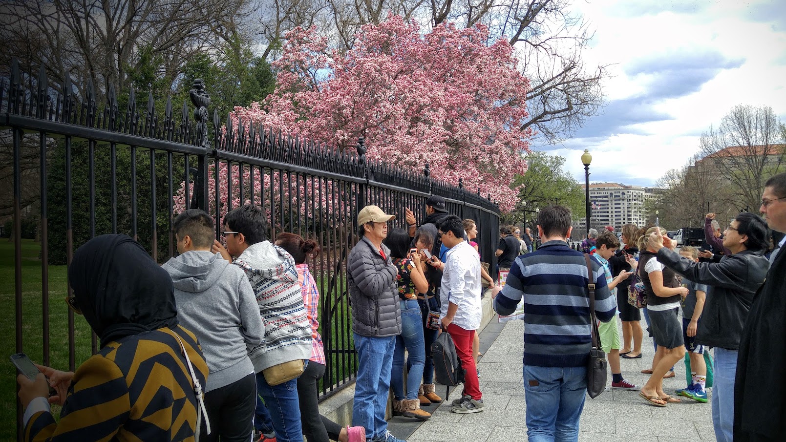 下面照片是在走去National Mall路上 38.884266, -77.033710 拍摄的,这里也有不少樱花