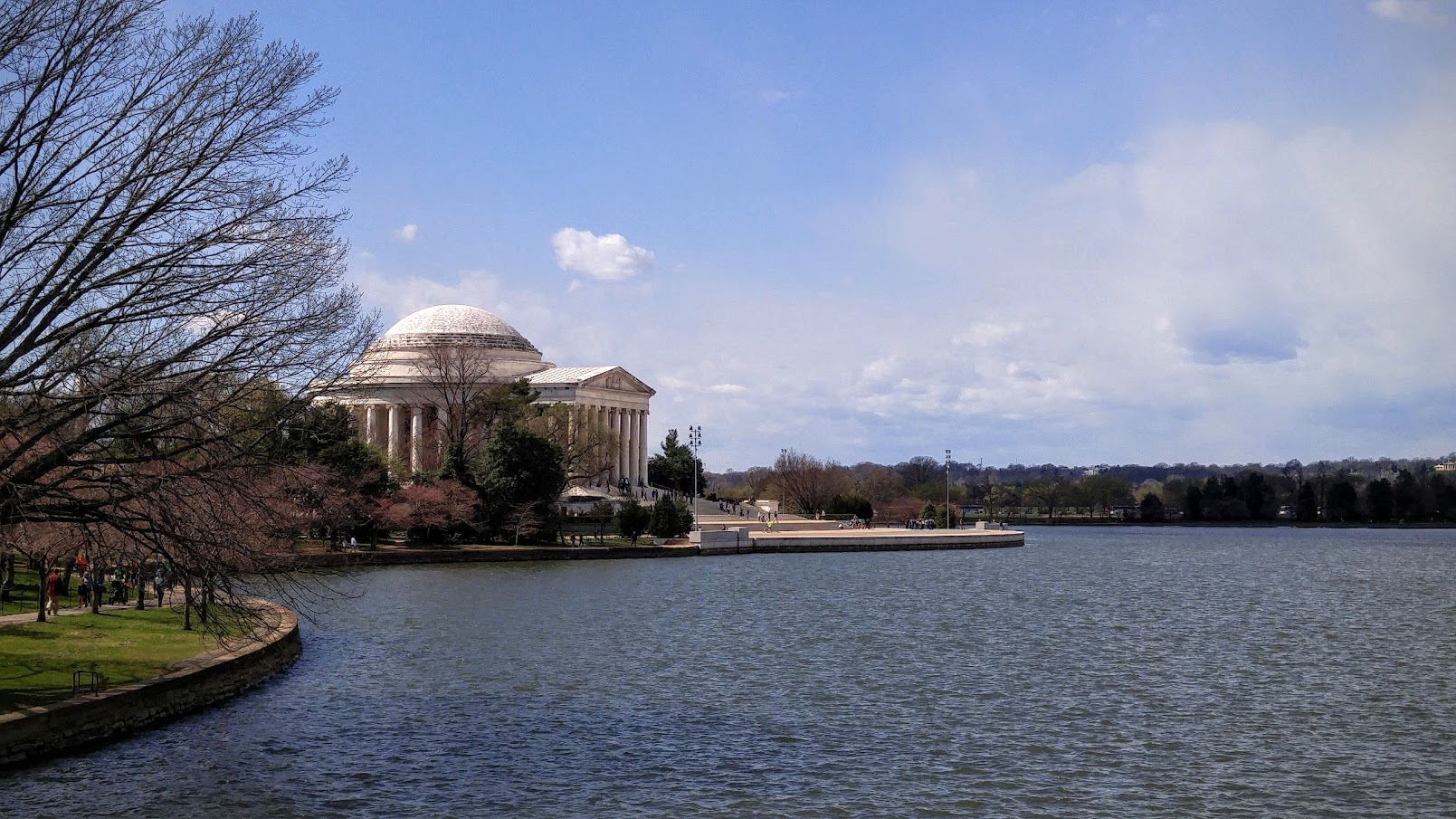 Tidal Basin 湖边远眺杰弗逊纪念堂,樱花盛开时这里将是一片花海。