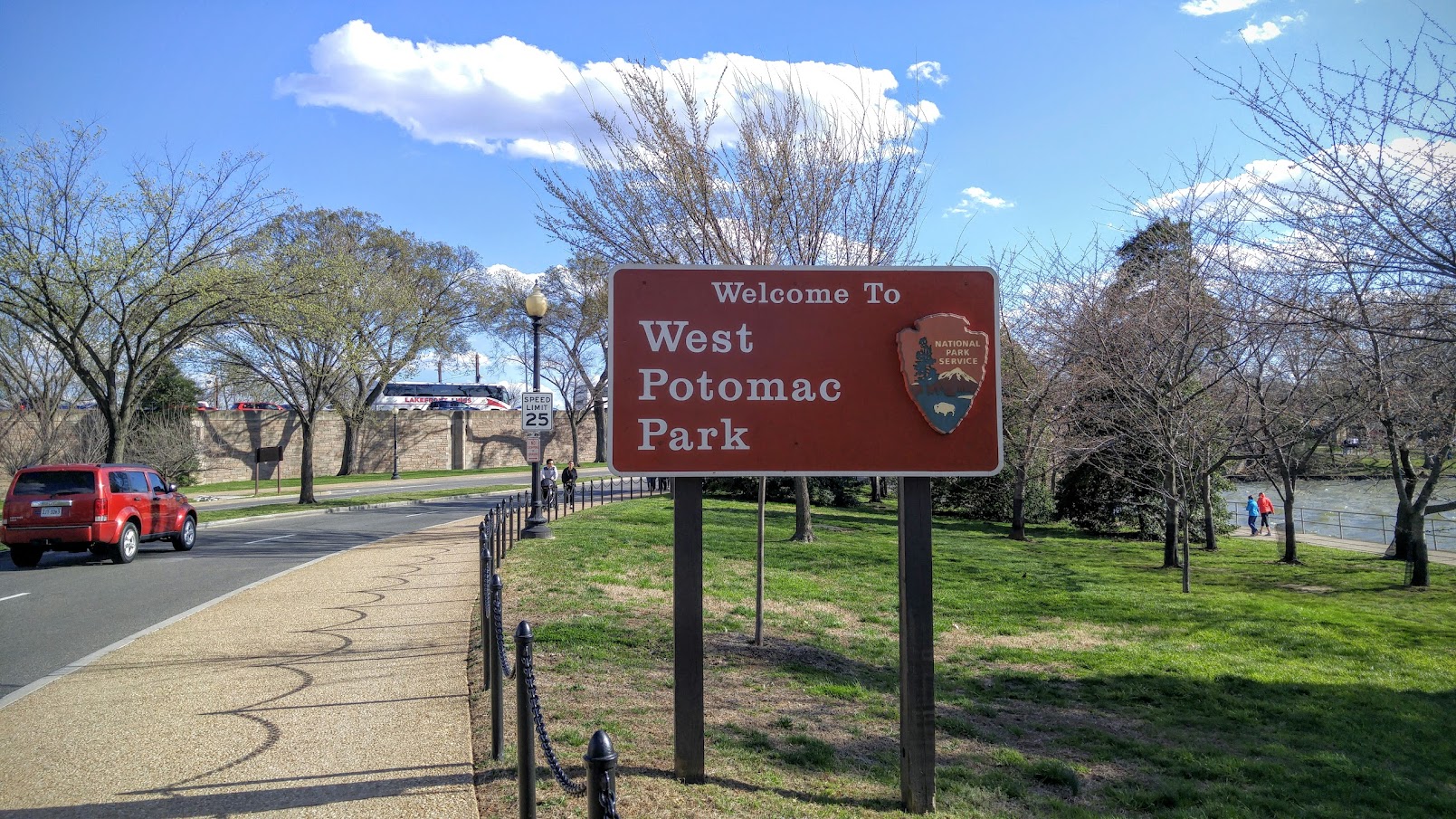 第二天运气没这么好,只好沿着 Ohio Dr SW往东南开到 East Potomac Park ,在Jefferson Memorial 杰弗逊纪念堂南面有三个免费的停车场(A,B和C),全都客满。