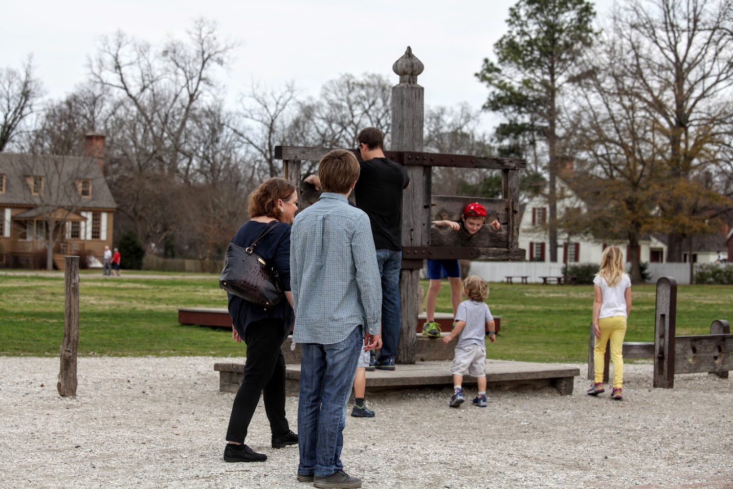 走到西面的尽头是 Colonial Williamsburg's Merchants Square (location)。马上进入了现代社会。