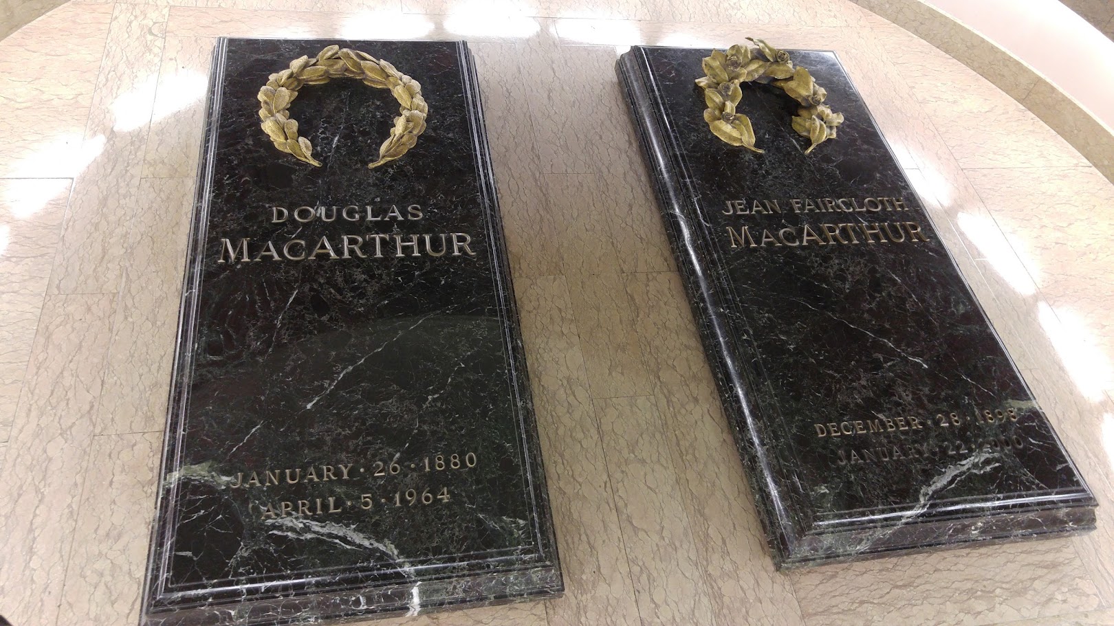 馆内麦克阿瑟和夫人的墓碑。他的家庭来自Norfolk,所以也葬在这里。