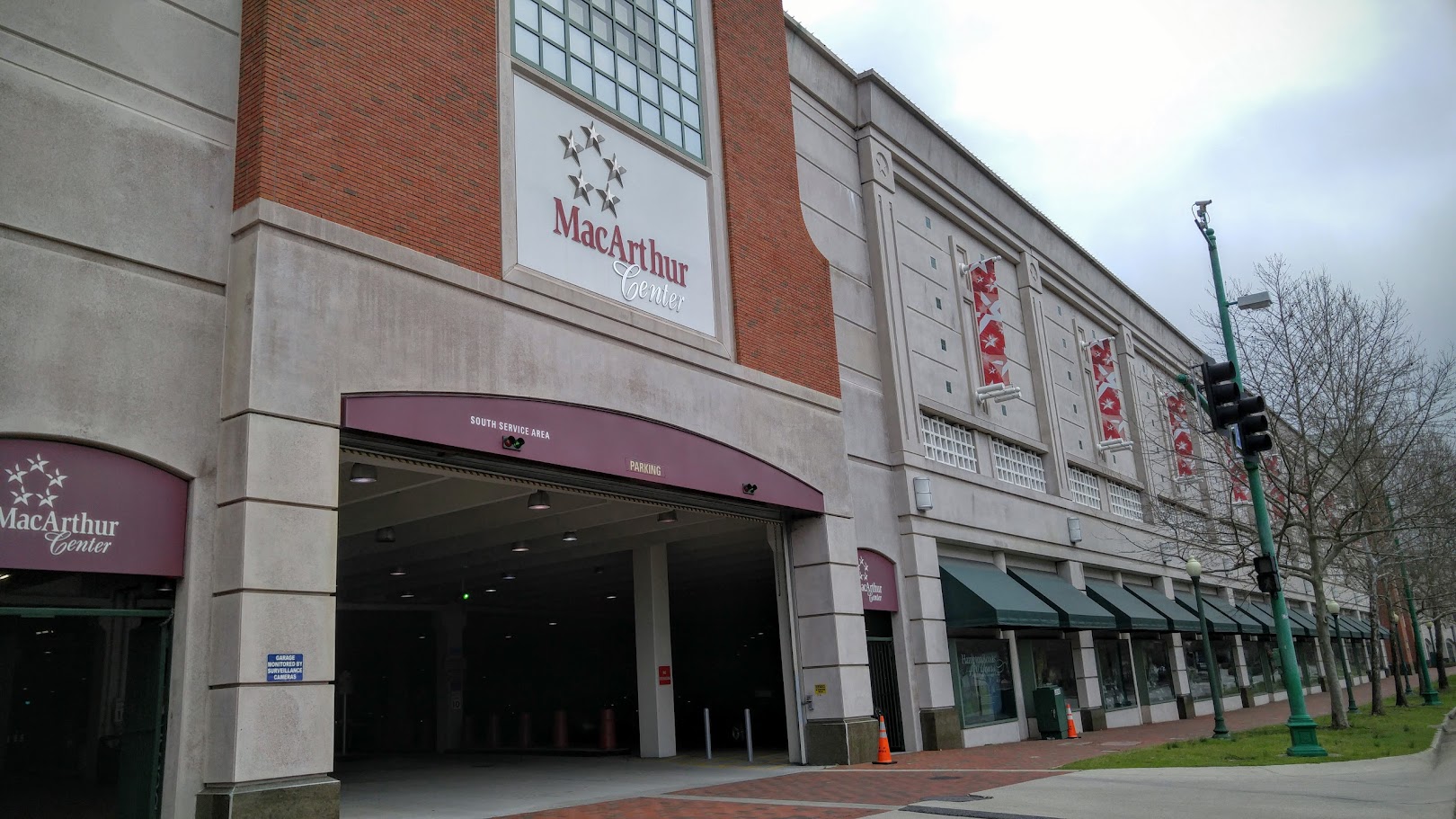 车停在对面的 MacArthur Center 的停车场。