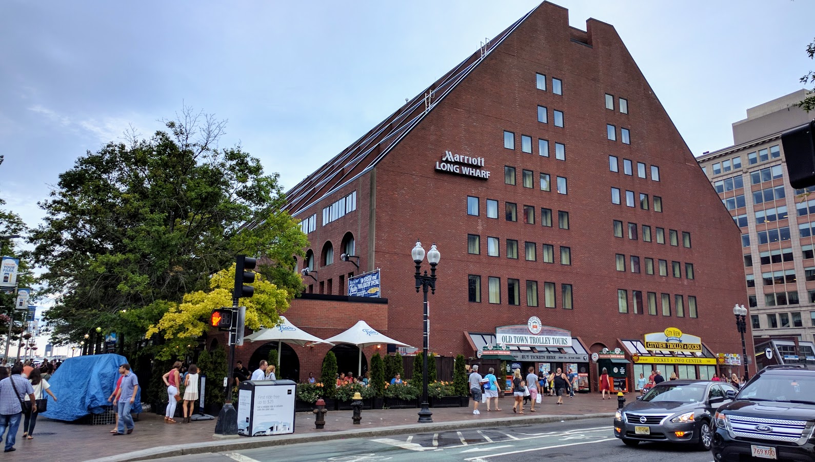 这是Quincy Market 附近海边的 Marriott Long Wharf,位置更好,不过可能有点吵。