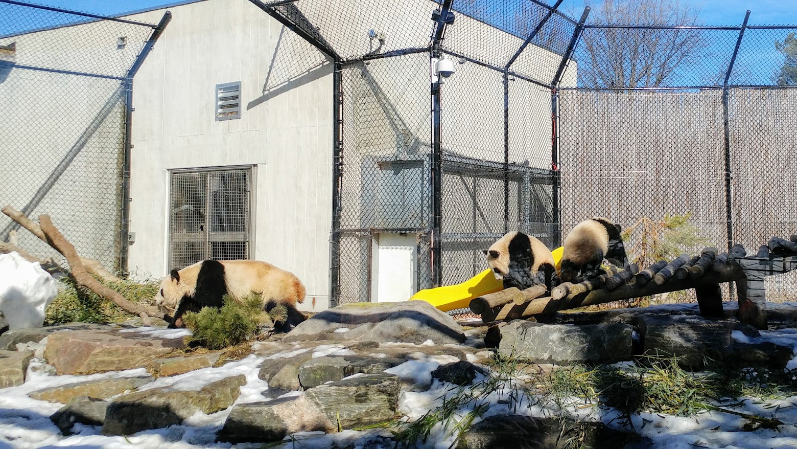 你也许已经注意到了,怎么只有三只,爸爸去哪儿了?原来被关在另一个后院,看样子很想进去。