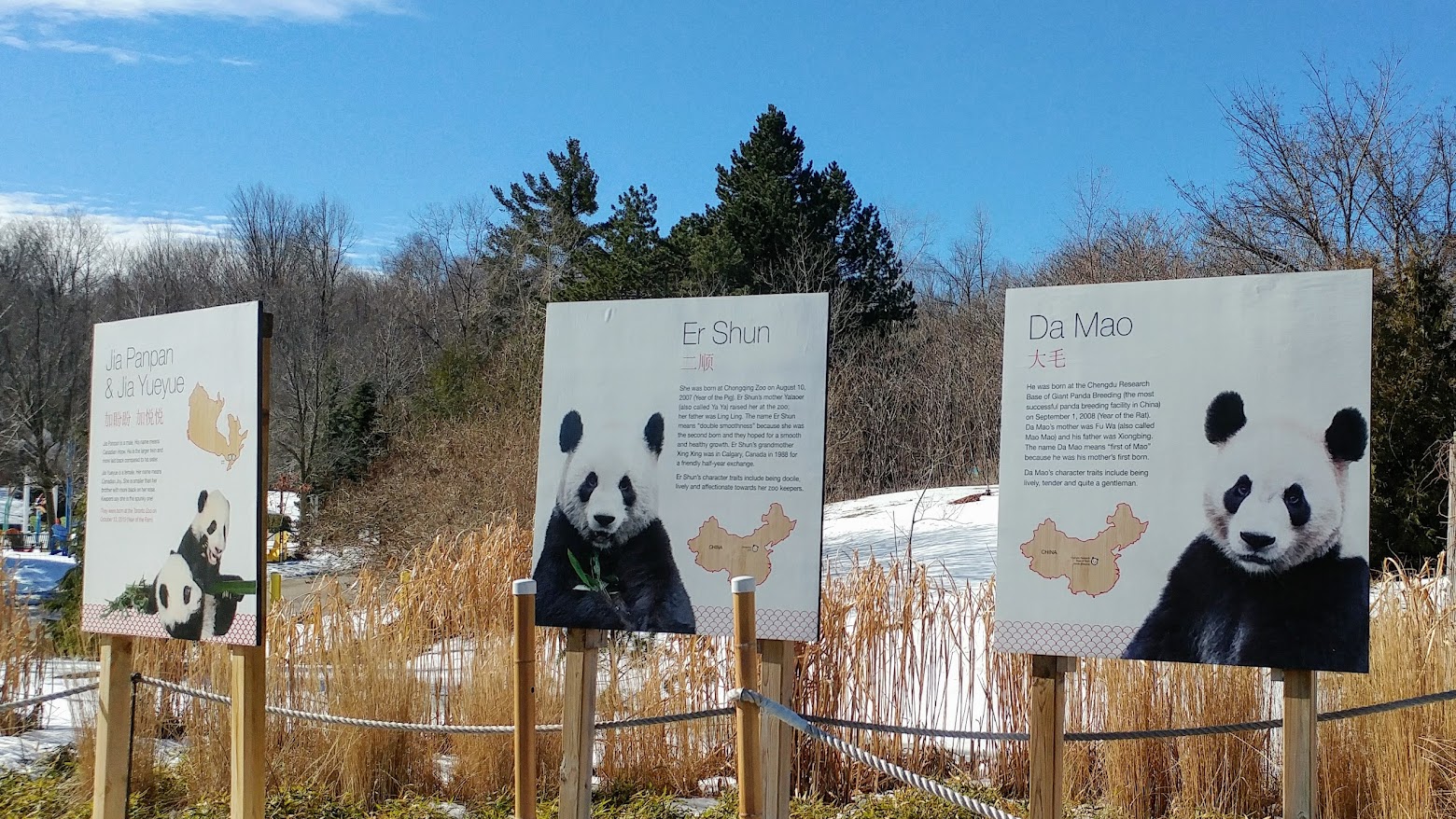 大毛和二顺 2013 年从中国四川移民到了多伦多动物园 43.820431, -79.181200,按租借规定,它们要在多伦多呆到 2018 年。
