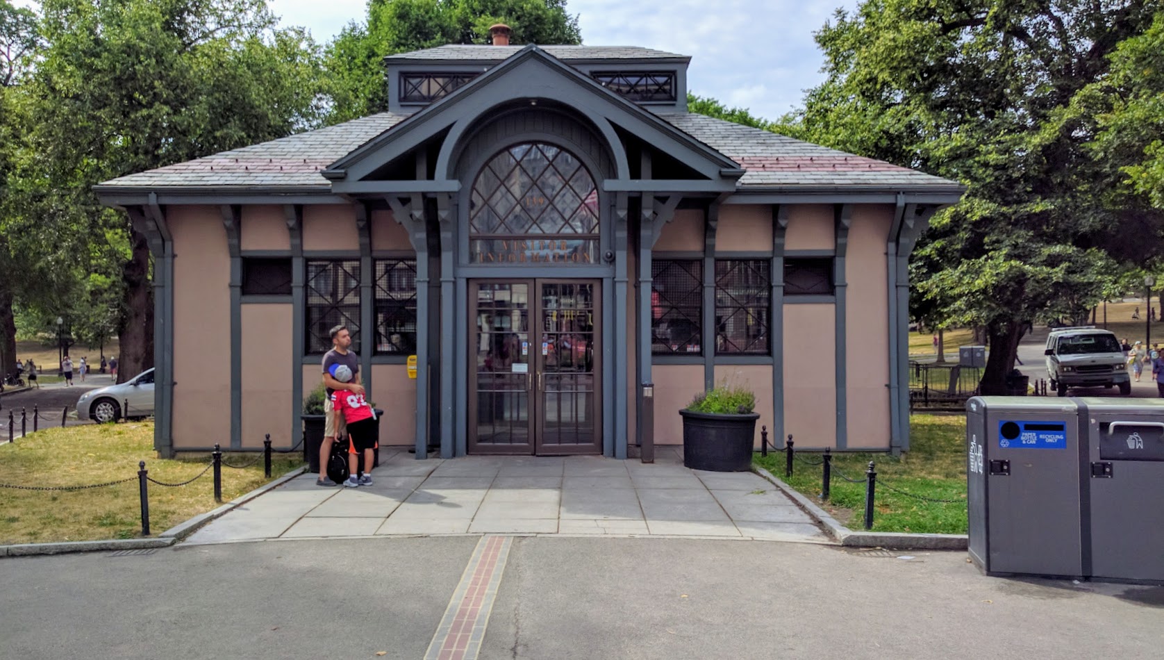 公园的访客中心 (GPS 坐标:42.355377, -71.063686) 是自由之路南端的起点。注意地面上用红砖标识的自由之路。