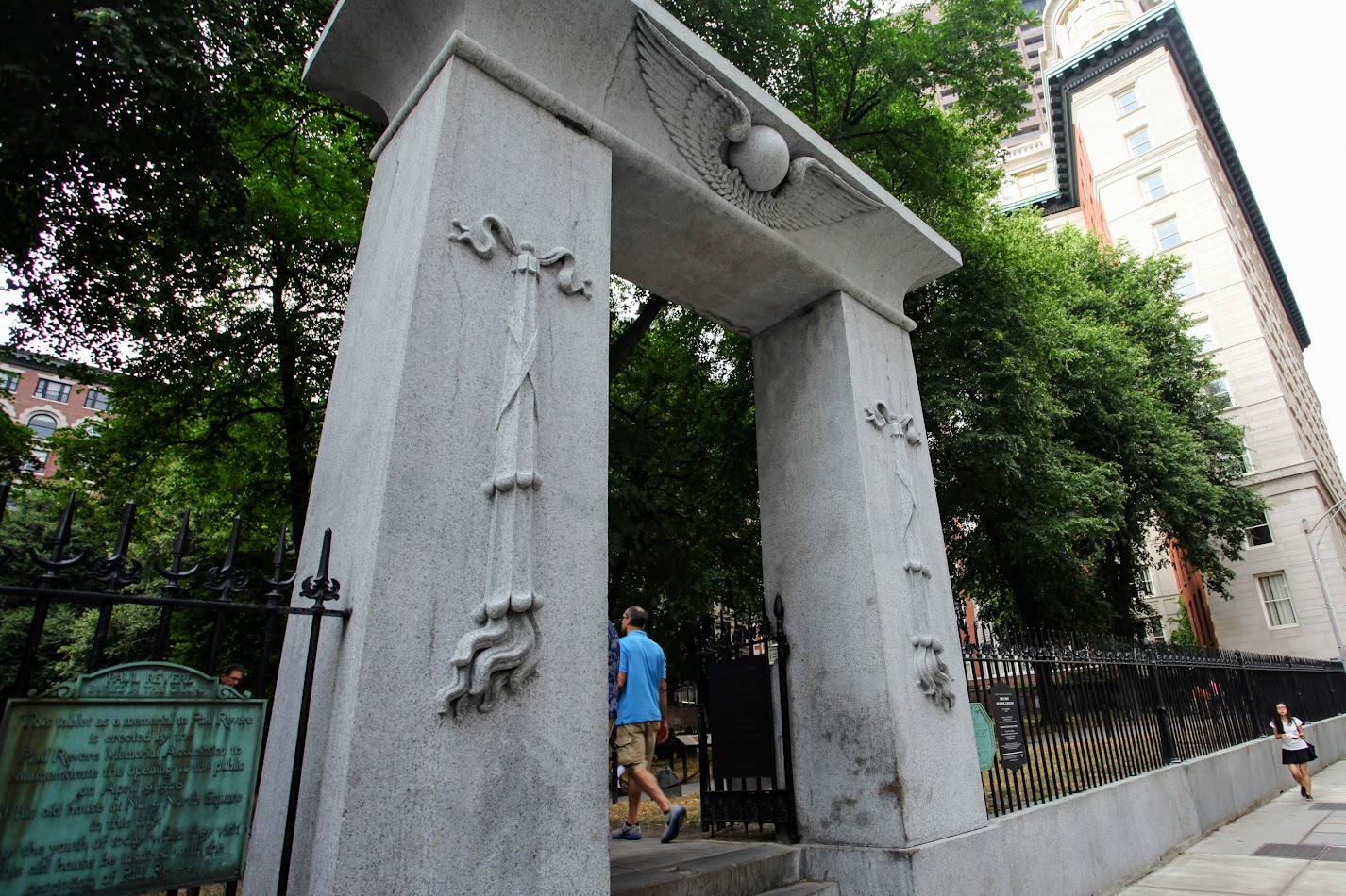 这个议会大厦和美国独立战争期间的两位传奇爱国者都有关系,议会大厦所在地方原来是约翰汉考克 John Hancock 的奶牛农场,他是马萨诸塞州的第一任州长。而其铜顶是由银匠和爱国者保罗·里维尔 Paul Revere ,他最有名的事迹是在列克星敦战斗中连夜通报民兵英军的进攻。
